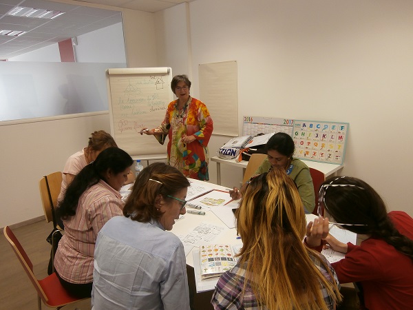 Un accompagnement en petits groupes de parents du quartier pour apprendre à maîtriser la langue française.
